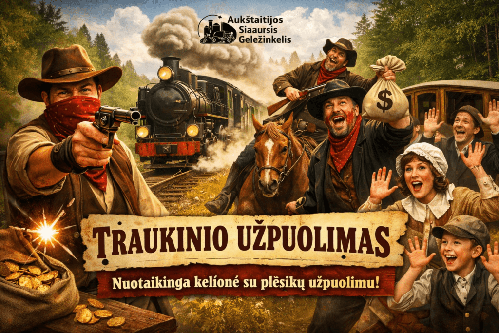 Tai nuotaikinga ir teatrališka kelionė Aukštaitijos siauruku, kurios metu keleivius netikėtai „užpuola“ plėšikai. Programoje Rekstino miške – gyvas vaidinimas, humoras, įtraukiančios užduotys ir smagi istorinė atmosfera, tinkanti tiek šeimoms, tiek draugų kompanijoms.