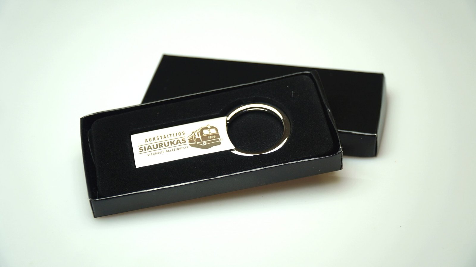 Klasikinis, metalinis raktų pakabukas. Supakuotas į dėžutę.